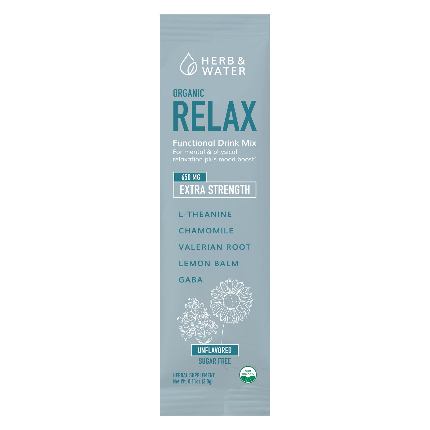 Organic Relax, Extra StrengthA proprietary blend of five active ingredients to relax your mind and body. Naturally flavored with herbs and real fruit powder.
